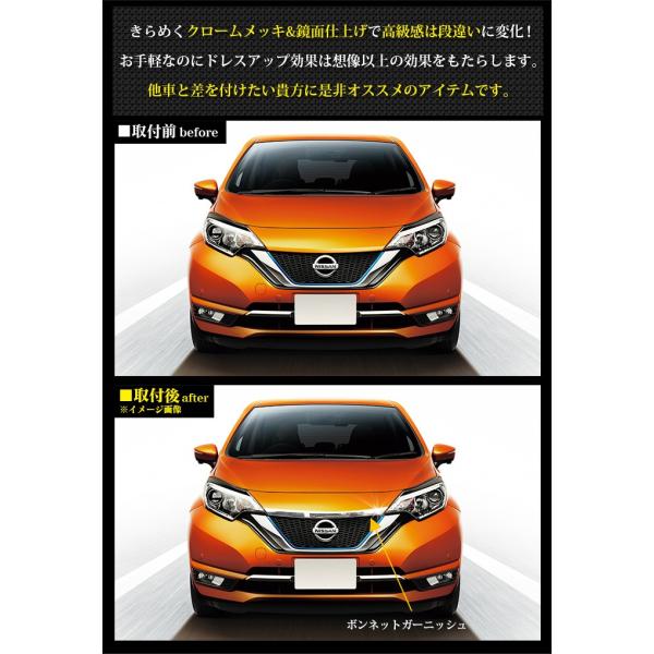 【検索ワード】 メッキ カバー パネル ガーニッシュ カバー カスタム パーツ フロント ボンネット 日産 ニッサン ノート E12