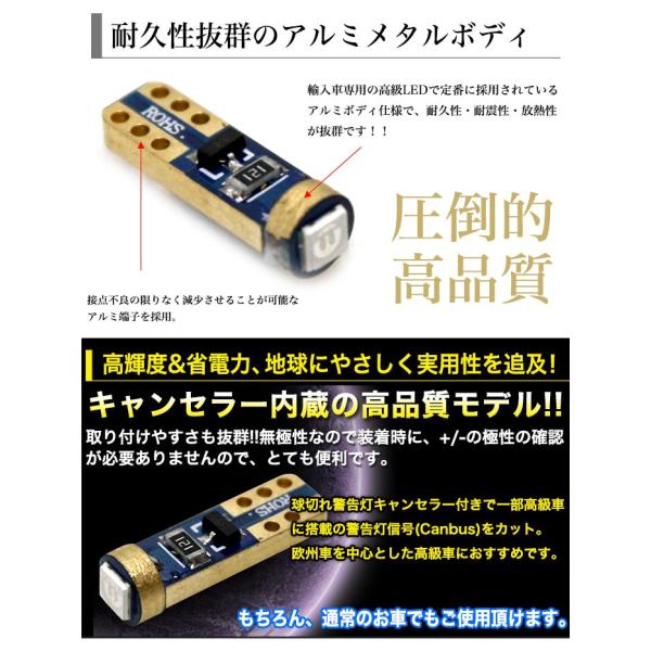 3030 SMD LEDチップ 1発 T5 25LM 0.4W アルミボディ ウェッジ球 メーター球 キャンセラー内蔵 12v 対応