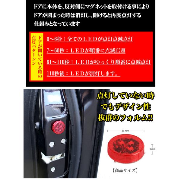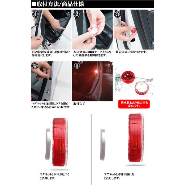 【検索ワード】 外装 カスタム ドレスアップ ガーニッシュ エクステリア ガード 車用品 外装パーツ LED LEDライト LEDランプ アクセサリー 反射板 リフレクター 自転車 カー用品 DIY ドア 衝突防止 追突防止 事故防止 警告灯 夜間 後方 マグネット センサー 警告ライト ドアランプ 電池式 ワイヤレス ワイアレス ストロボ タクシー トラック C-HR タンク ルーミー アクア ヴェルファイア アルファード エスティマ ハリアー ヴォクシー ノア エスクァイア クラウン ヴィッツ bB シエンタ プリウスα ハイエース 86 NBOX N-BOX + NWGN N-WGN フィット ハイブリッド