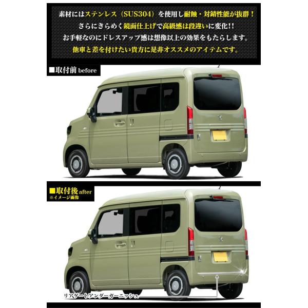 N-VAN NVAN JJ 1 JJ 2 系 リアゲートガーニッシュ バックドア サビに強いSUS304ステンレス製 鏡面 仕上げ 1P