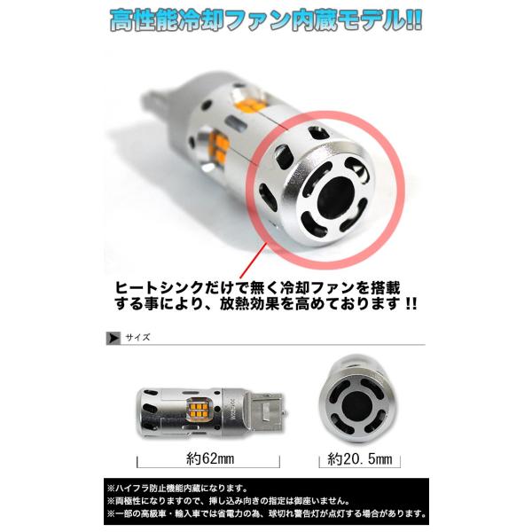 T20 LED ステルス ウィンカー バルブ 1200LM 冷却ファン ハイフラ内蔵 ハイパワー ウェッジ球 ウインカー FJ5126