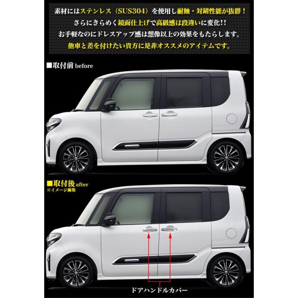 【検索ワード】 メッキカバー メッキパーツ パーツ アクセサリー カー用品 ガーニッシュ ガード カバー モール ベゼル DIY メッキ 外装 車用品 ドレスアップ ドアメッキ トリム ドアノブカバー ドアノブ サイド ドアベゼル ドアカバー スマートキー レバー ハンドル ドアハンドルカバー ドアガーニッシュ ステンレス 鏡面 ダイハツ タント カスタム LA650S LA660S