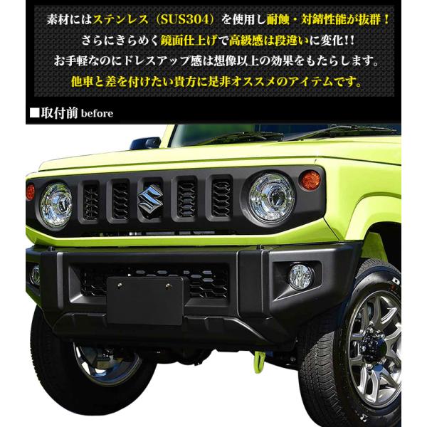 【検索ワード】 メッキパーツ パーツ メッキカバー カスタム ドレスアップ メッキカバー ベゼル ガード クローム クロム トリム 鏡面 専用設計 車用品 ステンレス ドレスアップ アクセサリー カー用品 傷防止 フロントバンパー アンダーガーニッシュ フロントバンパープレート フロント バンパー アンダー カバー プロテクター DIY ジムニーjb64