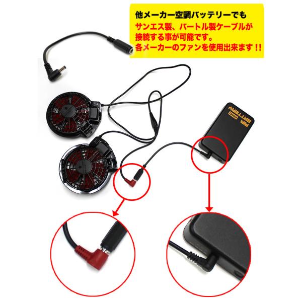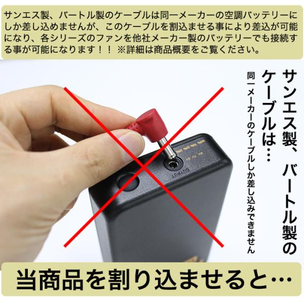 空調ベスト 空調 作業 服用 サンエス 製 バートル製 純正 変換 ケーブル 用 ファン 接続用 アダプター バッテリー 電池 ハイパワーファン 空調ウェア