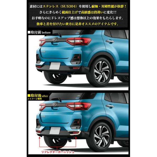ライズ ロッキー A200A A210A系 A200S A210S 系 リアリフレクターガーニッシュ カバー メッキ 反射板 鏡面 ステンレス製 2P