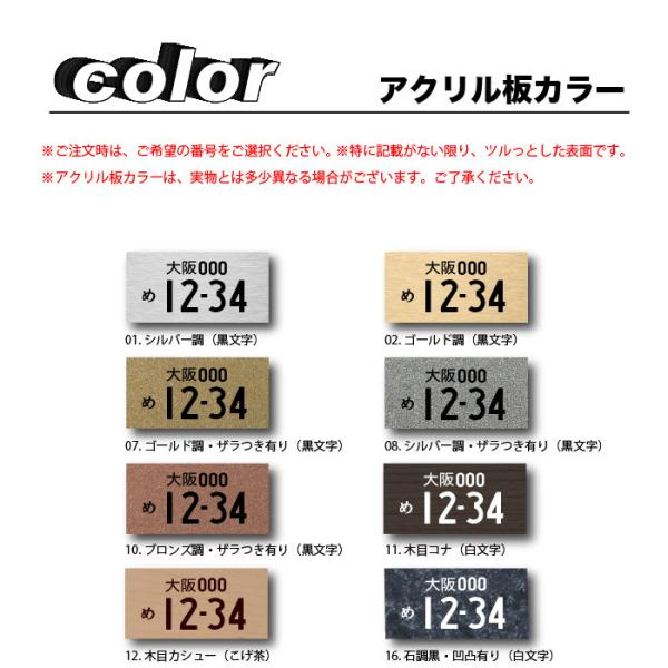 ※ご当地ナンバーに関しましてはデザインが特殊な為、制作が出来かねますので何卒ご了承の程、宜しくお願い致します。