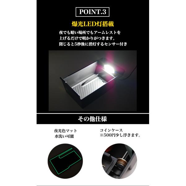 ハリアー 80 系 センター コンソールボックス トレイ トレー ボックス LED搭載 USB スマホ 充電 小物 収納 便利 整理 整頓 滑り止めマット付き 水洗い可
