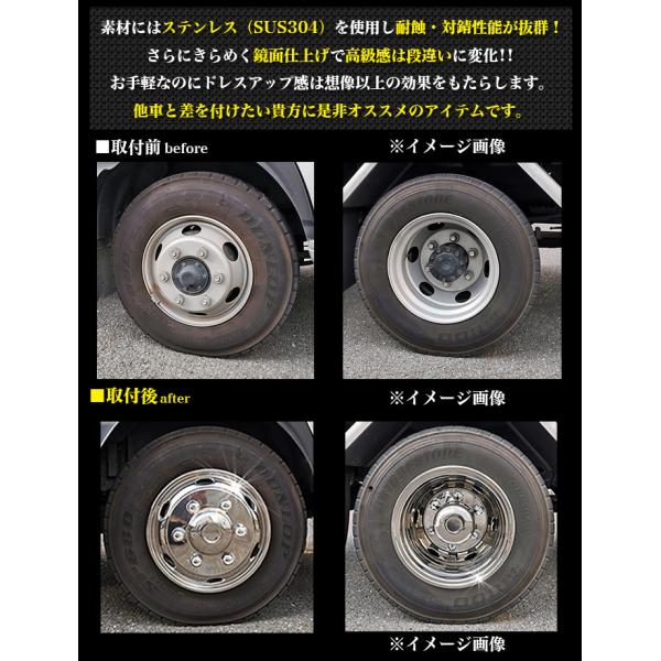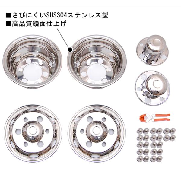 トラック ホイール ライナー 17.5インチ 6穴 仕様 タイヤ カバー ステンレス 汎用 メッキ 鏡面 前後 四輪セット 日野 三菱ふそう 日産 UD いすゞ マツダ
