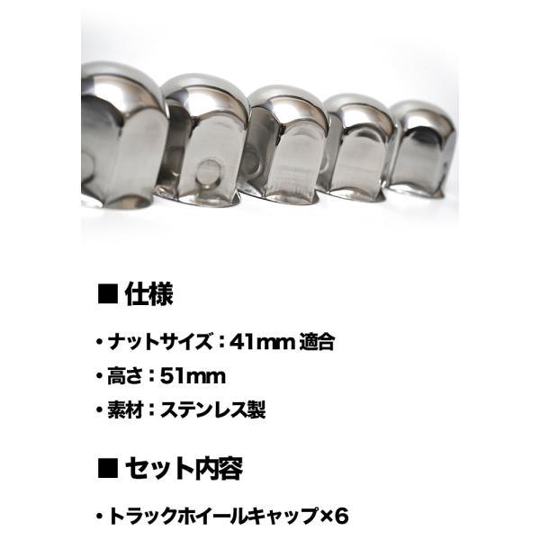 トラック ホイール ナット キャップ 6個 ステンレス 仕様 ナットサイズ 41mm 高さ 51mm タイヤ カバー 汎用 メッキ 鏡面 中型車 用