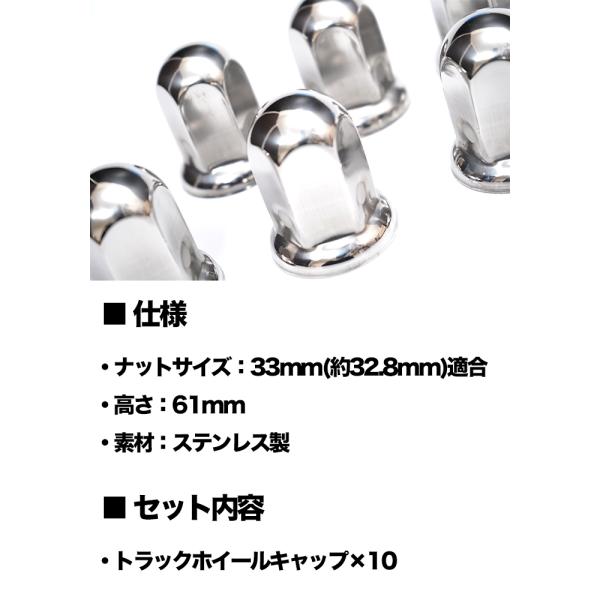 トラック ホイール ナット キャップ 10個 ステンレス 仕様 ナットサイズ 33mm 高さ 61mm タイヤ カバー 汎用 メッキ 鏡面 大型車 用