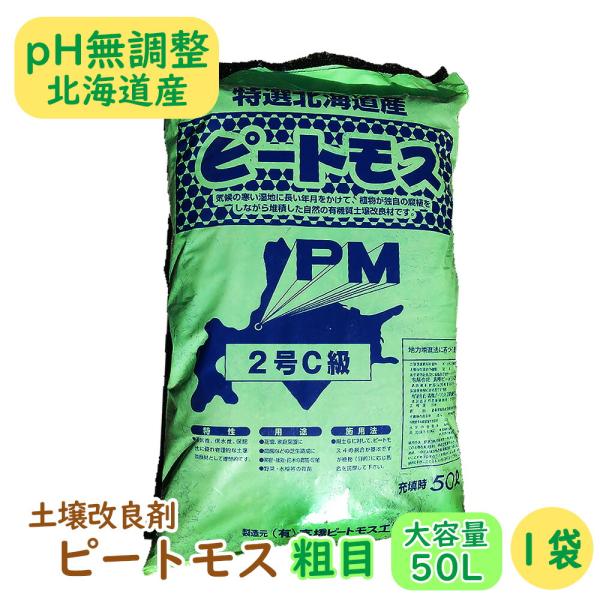 土壌改良剤ピートモス『粗目』大容量の50L! 1袋 pH無調整 北海道産 国産 根の張りが段違い!伸縮性があり、通気性バツグン!