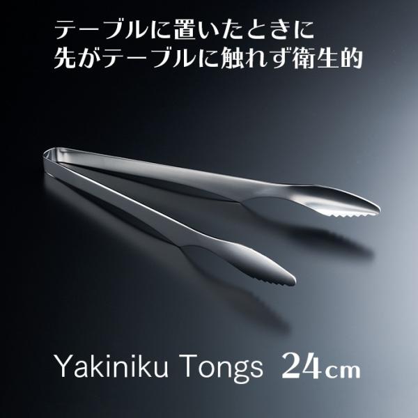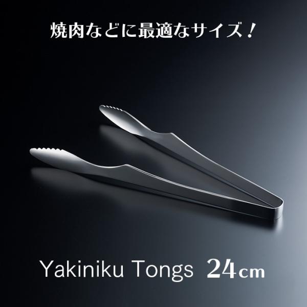 使い勝手の良いサイズ(24cm)。つかみやすいスリムな形状で、焼肉に最適です。ステンレス製でお手入れも簡単。