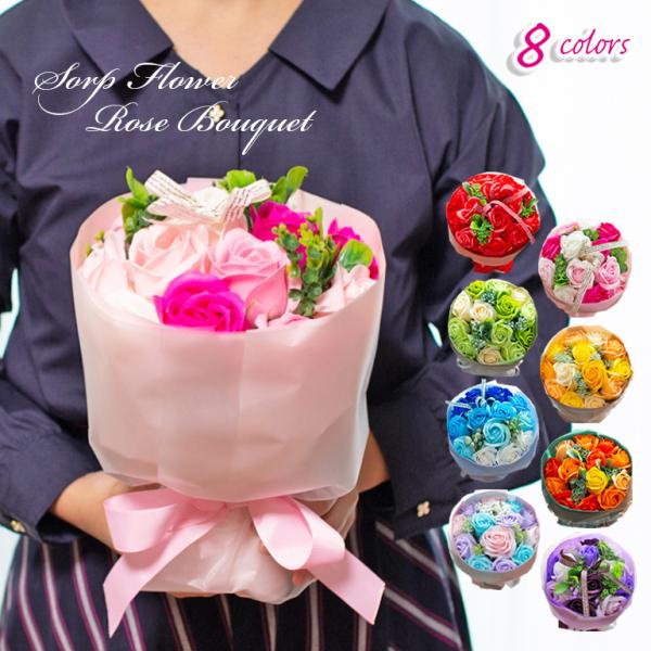ソープフラワー ローズブーケ シャボンフラワー 造花 花束 花 プレゼント ギフト 石鹸素材 ギフトバッグ付き メッセージカード付き FPP-8092
