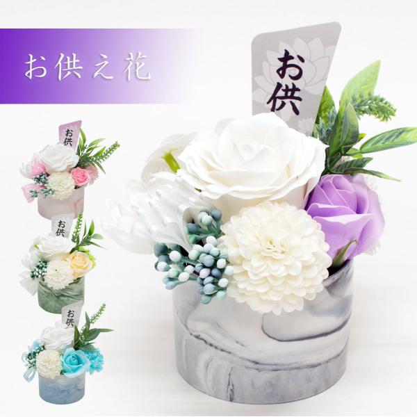 お供え 仏花 ソープフラワー おしゃれな大理石調 陶器 シャボンフラワー お仏壇 仏壇用 花 お悔やみ 贈り物 供花 お悔み 命日 FPP-159