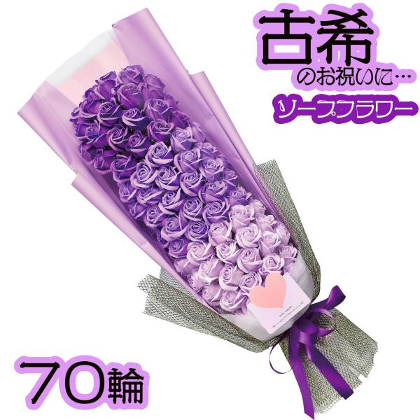 【古希メッセージスタンド付】 ソープフラワー 70輪 ローズシャボンブーケ シャボンフラワー 古希 古希祝い 70歳 花 バラ 薔薇 花束 誕生日 プレゼント ギフト
