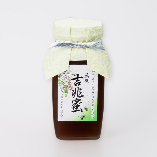 現在、日本にいる蜜蜂には、明治時代に海外から輸入された西洋ミツバチと、古来より日本に生息する日本ミツバチの2種類があり、一般に流通している蜂蜜は西洋ミツバチが作った蜂蜜です。古式採取方法により採った日本ミツバチの蜂蜜は粘度が高く濁っていることから、私どもは「にごり蜜」と呼んでおり、蜂蜜をローヤルゼリー・花粉・蜂の子・蜜蝋とともに取り出し、各種アミノ酸・タンパク質・ビタミン・酵素・ミネラルなどが豊富に含まれているものの、その味は複雑でクセが強く、美味しいとは言い難い蜂蜜です。そこで、この「にごり蜜」にセイヨウミツバチのあかしあの蜂蜜をブレンドしました。さらにプロポリスを加え、ミツバチが与えてくれるほぼすべての贈り物(蜂産物)を包含する健康志向商品「藤原吉兆蜜」が誕生いたしました。長寿蜜は藤原養蜂場の健康志向のはちみつとしてロングランを誇る縁起の良い蜂蜜です。あかしあのはちみつにプロポリスエキスとローヤルゼリーを加えました。とかく、滋養たっぷりのにごり蜜などは、なかなか食べにくいとおっしゃるお客様がいらっしゃる中で、この長寿蜜は食べやすくて続けられると、評判の高い商品です。