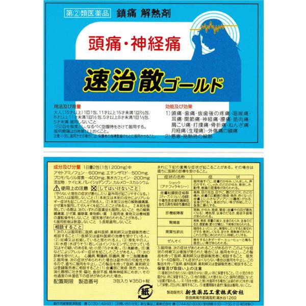 速治散ゴールド 1個(30包) そくちさん 痛み止め 頭痛 歯痛 関節痛 置き薬 配置薬 奈良 新生薬品工業 指定第2類医薬品
