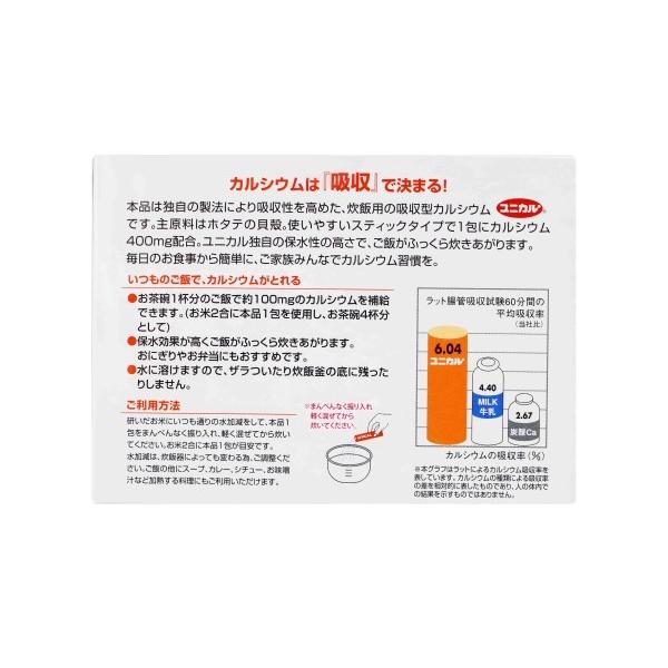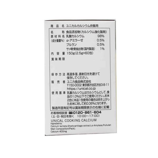 ■内容量:1箱 60包入(1包2.5g×60)■お召し上がり方:お米1合につき、ユニカルカルシウム炊飯用1グラムが目安ですので、2〜3合で1包をご利用ください。