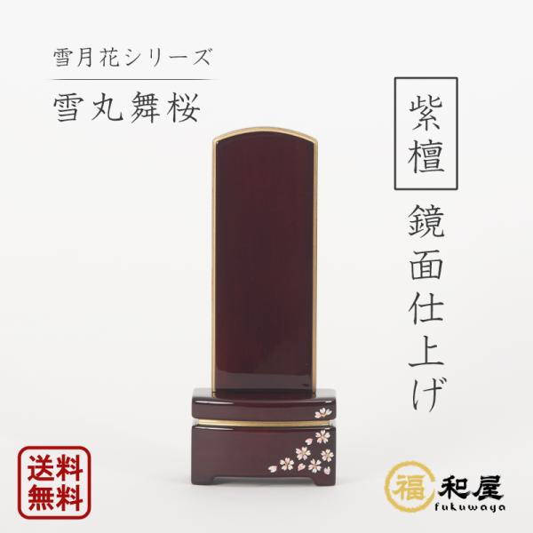位牌 モダン位牌 雪月花 雪丸舞桜 鏡面コーティング 紫檀 4寸 4.5寸 5寸 【名入れ一名様無料】モダン位牌 名入れ 文字彫り 書き 駿河蒔絵位牌 本位牌 さくら