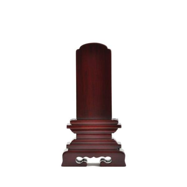 唐木の「紫檀」を使用した御位牌です。札板の上部は木瓜型で、台座の下部の角が丸くなっております。