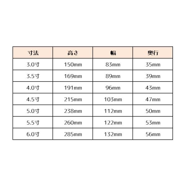 サイズは3.0寸、3.5寸、4.0寸、4.5寸、5.0寸、5.5寸、6.0寸からお選び頂けます。