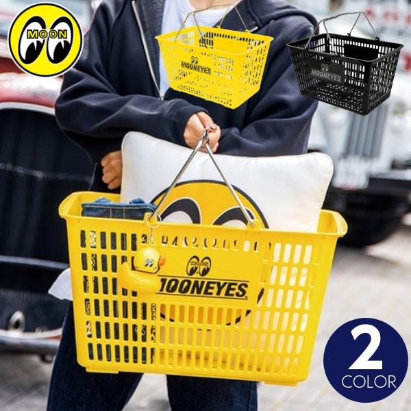 ショッピング バスケット ムーンアイズ 黒 イエロー 買い物かご バスケット かご mooneyes 収納用品 アメリカン雑貨 収納かご ショッピングバスケット