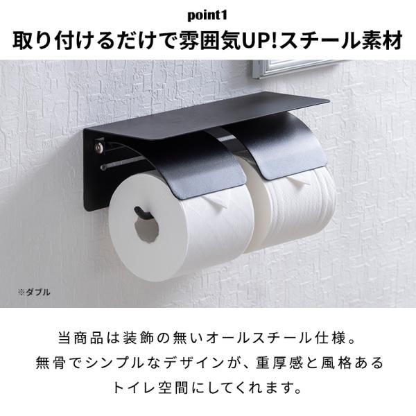 トイレットペーパーホルダー 2連 縦 おしゃれ アイアン 棚 ツイン カバー オールスチール かっこいい 紙巻き器 シンプル