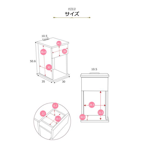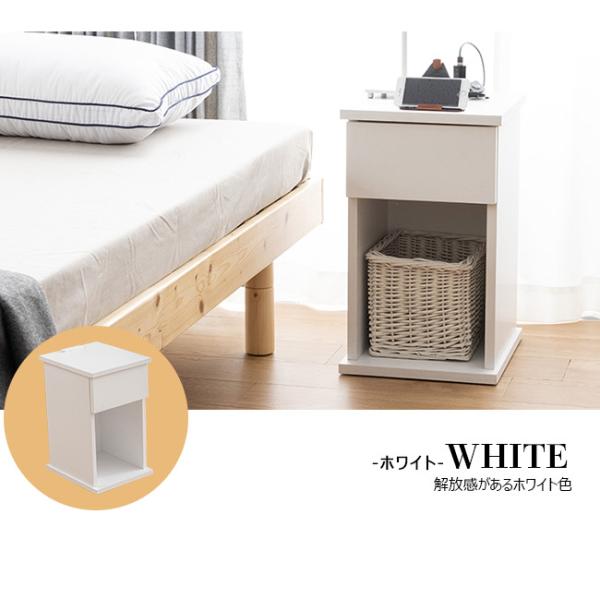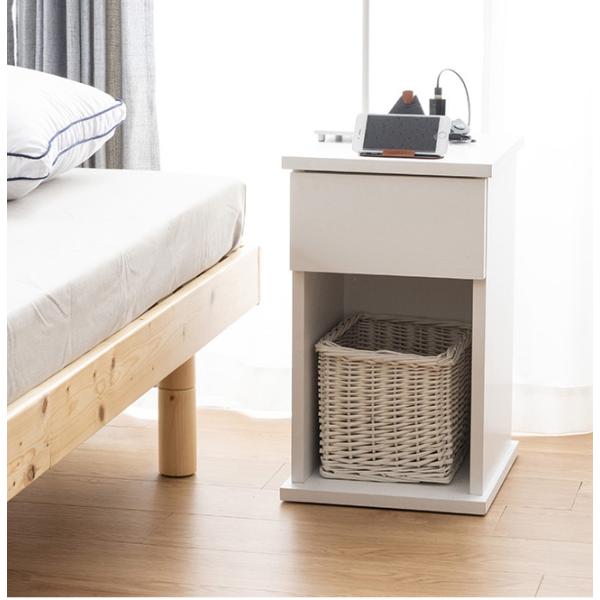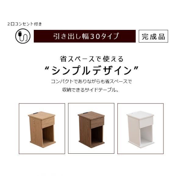 サイドテーブル ベッド 幅30cm 引出し付き テーブル ミニテーブル コンセント付き 2口 コンパクト