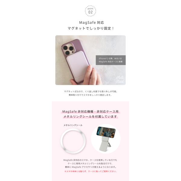 MagSafe対応で簡単装着!スマホの縦置き・横置きどちらにも対応。