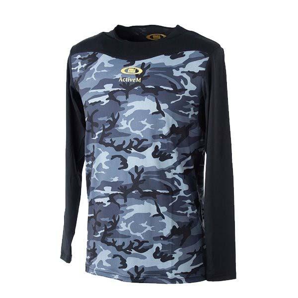 【ネコポス送料無料】アクティブーム 長袖 アンダーーシャツActiveM コンフォートインナー ブラック 02 カモ柄 丸首 長袖 中学 高校 部活 大学