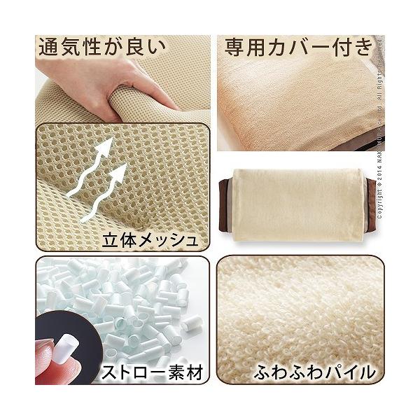 材質:側地-ポリエステル100%(立体メッシュ)、中材-パイプ、枕カバー生地-綿100%(パイル地)