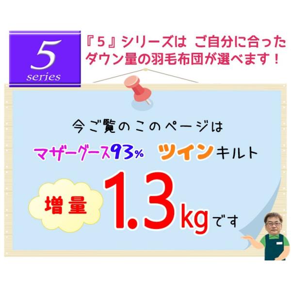 【5】シリーズ 増量1.3kg マザーグース93% 1.3kg ツインキルト 羽毛布団 シングル ハンガリー産マザーグース93%/シングルロング/SL/420dp以上