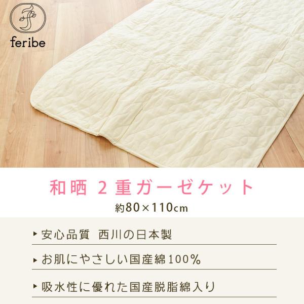 爆買セール ベビー ガーゼケット 80×110cm 西川 日本製 綿100% 和晒2重ガーゼ 脱脂綿入り キルトケット ガーゼのタオルケット