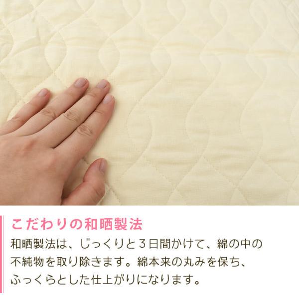 生地はこだわりの和晒製法で作られています。和晒製法はじっくりと3日間かけて綿の中の不純物を取り除くことで、綿本来の丸みを保ち、ふっくらとした仕上がりになります。