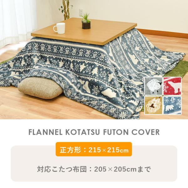 こたつ布団カバー 正方形 大判 215×215cm あったかフランネル 洗える コタツカバー ひつじ/しろくま