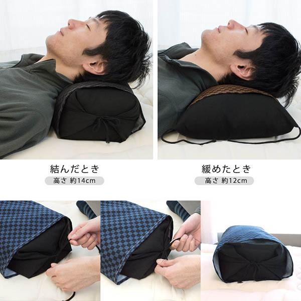 紐を緩めると枕の形が変わり、高さも低くなります。