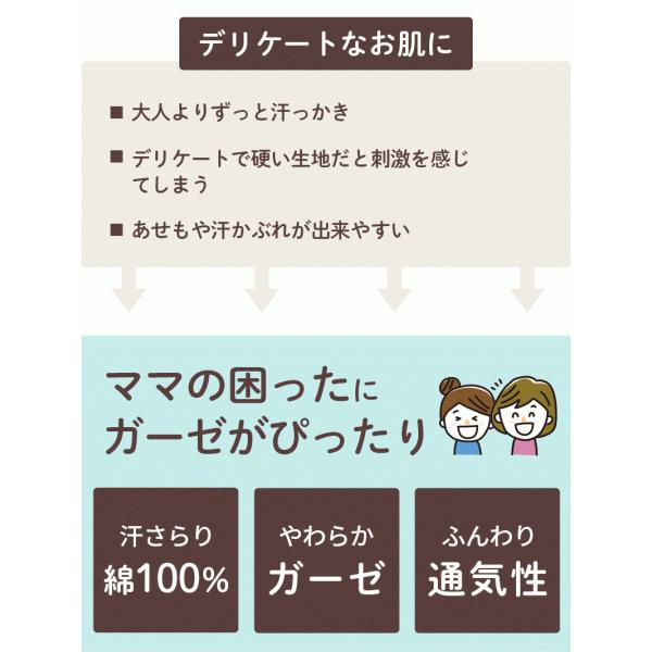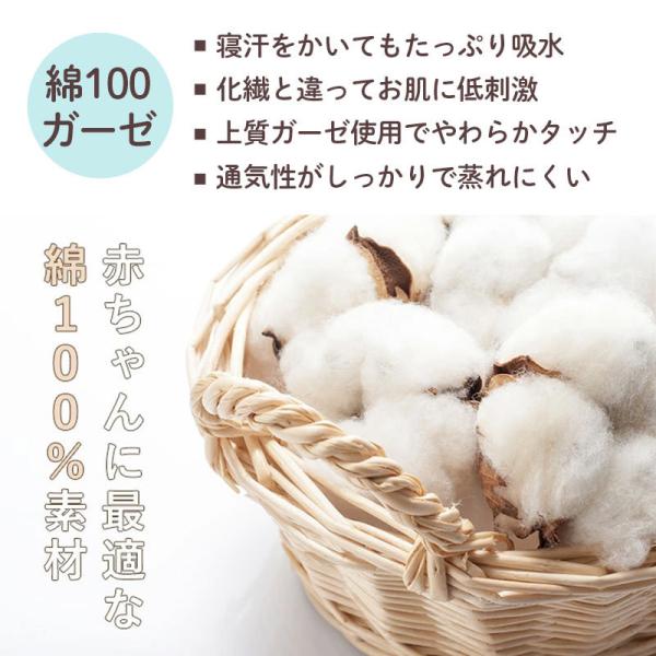 天然素材の綿100%ガーゼだから、寝汗をかいてもたっぷり吸水。それでいて、通気性がしっかりで蒸れにくい!