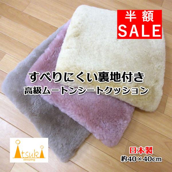 京都発 ファンディーナ 日本製 ムートンシーツクッション 40×40cm オーストラリア産スプリングラム 毛足25mm 天然 床ズレ防止 マスダ 抗菌防ダニ加工 介護
