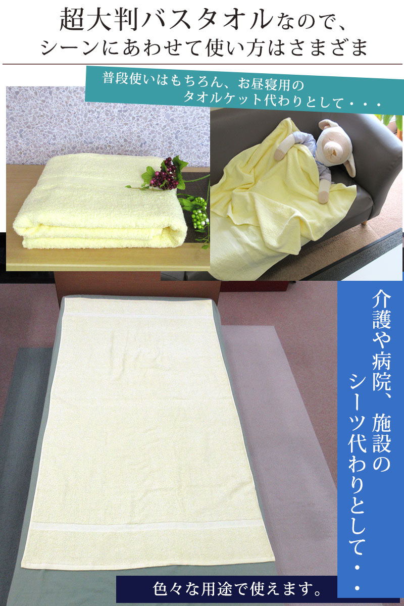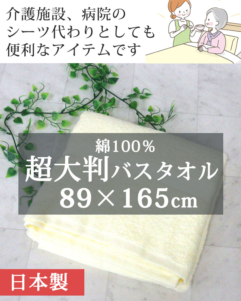 超大判バスタオル 89×165cm 綿100% 日本製 バスタオル 大判 超大判タオル シニア 介護 病院 入院 施設 シーツ代わり 無地 大きめ タオル