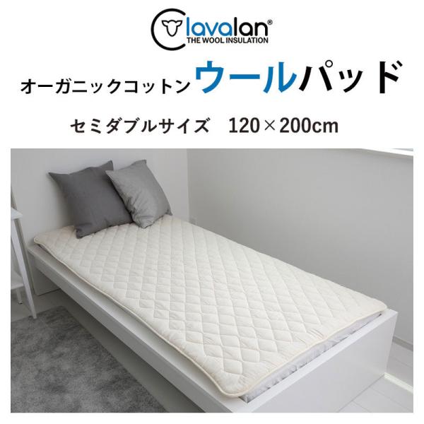 高級ウール ベッドパッド セミダブル オーガニックコットン2重ガーゼ ラバランウールダウン 綿100% 洗える 敷きパッド 四隅ゴム付き 羊毛 ウール SDGS