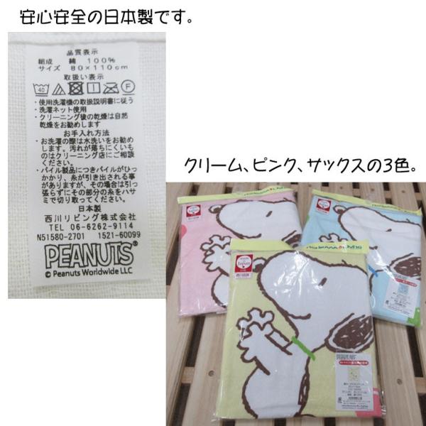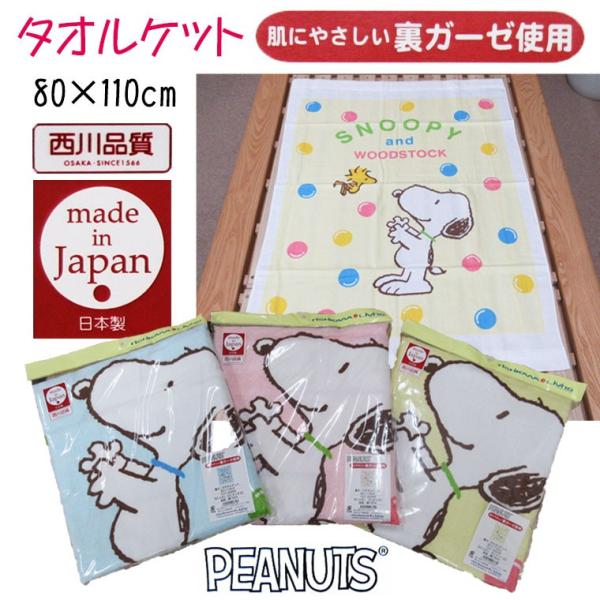 日本製 西川 スヌーピータオルケット 80×110cm/ベビー/綿100%/裏ガーゼ/ねんね/PEANUTS/コットン/西川リビング/出産祝い/洗える/お昼寝/赤ちゃん