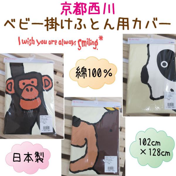 日本製 京都西川 ベビー掛けふとん用カバー くまと白くま ぶたとパンダ 風船とチンパンジー102×128cm/赤ちゃん/洗い替え/綿100%/丸洗い/ふとんカバー