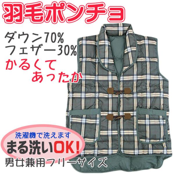 丸洗いOK!!あったか羽毛ポンチョ