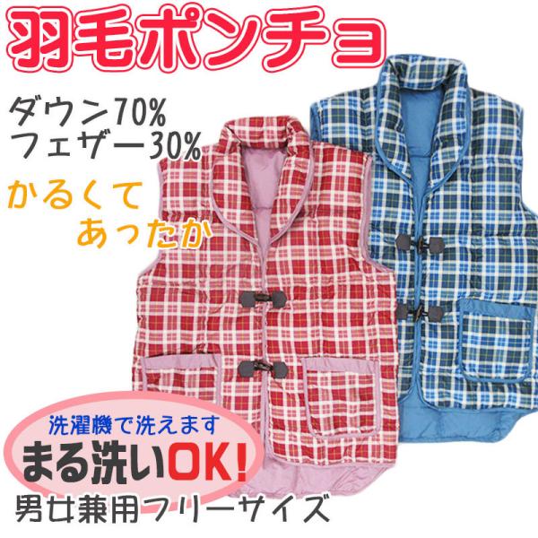 丸洗いOK!!あったか羽毛ポンチョ