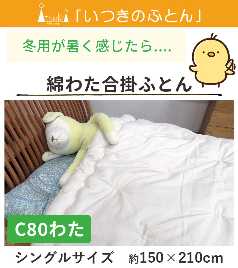 春秋におすすめ!綿わた合掛ふとん シングルロング 重みのある綿掛布団 8ヵ所ループ付き 2.0kg 合掛布団 綿100% 合掛け布団 日本製 いつきのふとん