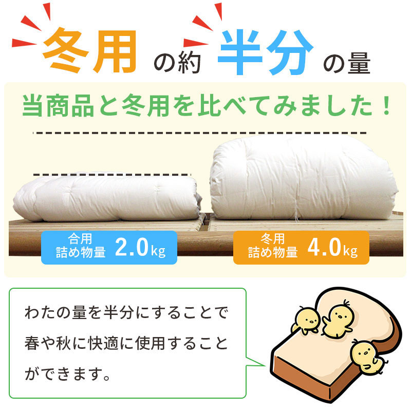 冬用の半分の厚み!春・秋におすすめの綿わたの合布団♪