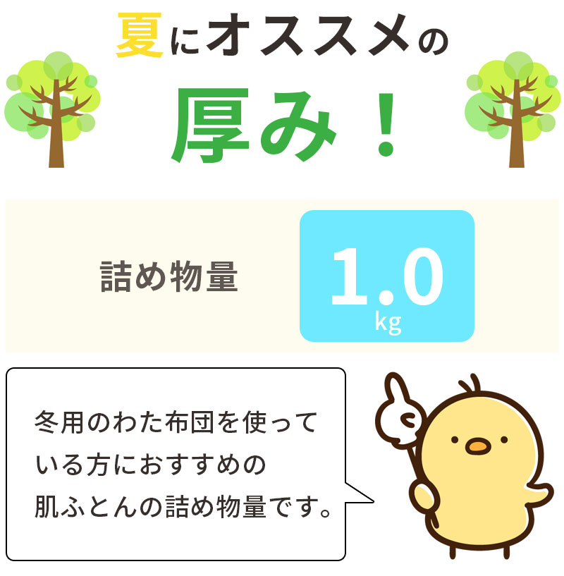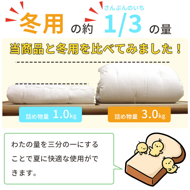 夏におすすめ!綿わた肌掛ふとん シングルロング 重みのある綿掛布団 1.0kg 8ヵ所ループ付き 綿100% 肌掛け布団 日本製 夏用 吸湿性 吸汗性 天然繊維 肌布団