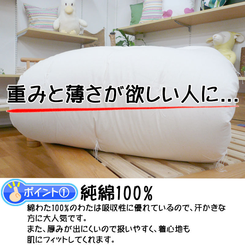 インド綿100% 超増量タイプ 綿わた敷布団 約100×210cm シングルロング 8.0kg 純綿/職人/手作り/日本製/和ふとん/綿わた/敷き布団/和布団