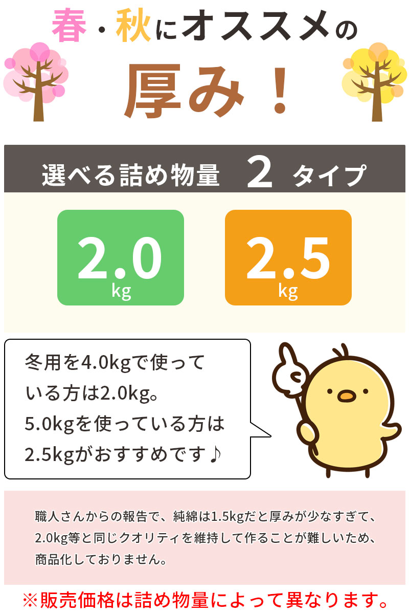 冬用の半分の厚み!春・秋におすすめの綿わたの合布団♪