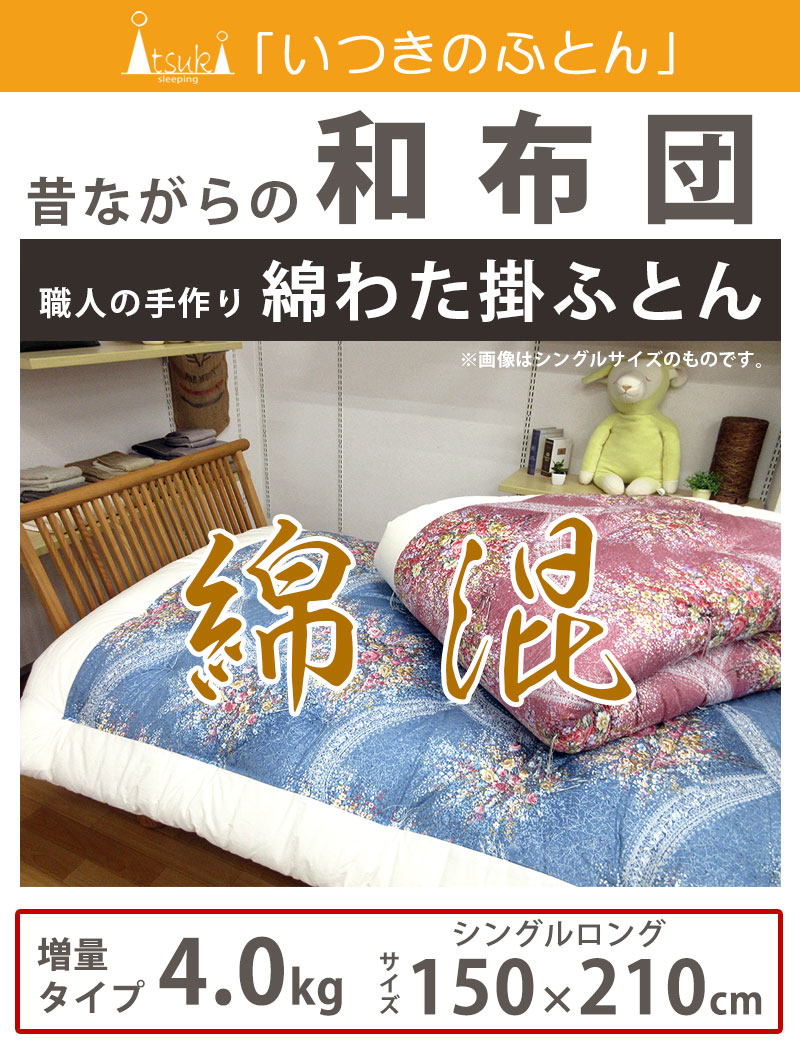 綿わた 和布団 綿混 掛布団 シングルロング 150×210cm 増量タイプ 4.0kg いつきのふとん 掛け布団 日本製 わたふとん 重いふとん 職人 手作り 和ふとん 綿わた